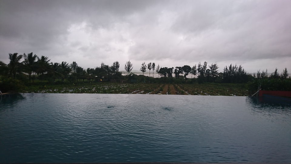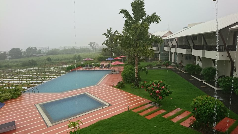 In this resort cum winery of India, Soma Vine Village, all the rooms are named after the wines. We had the Cabernet room for the night. The plush bed, opulent dressing and a palm plant next to the shower gave us a blissful stay experience. In addition to that was the view from the balcony, where I spent my most time while in the room. It rained continuously that day but I didnโt mind at all since it offered the most stunning views of the vineyard, mountains, pool and the palm trees.